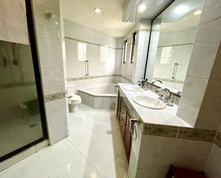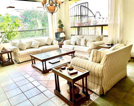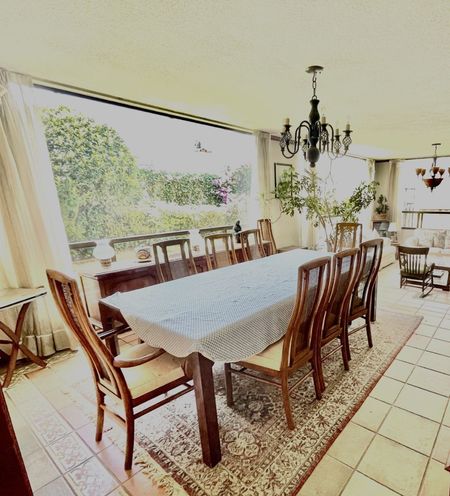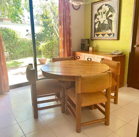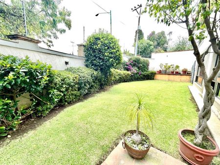 Condominio de solo dos casas con entrada independiente, caseta de vigilancia, servicio de conserje y estacionamiento para 7 autos. Agradable jardín de 120 m2, tres recámaras la principal con baño y vestidor, las dos recámaras secundarias con baño y amplios closets, área de t.v. despacho o estudio con salida a terraza y cómodo antecomedor con salida al jardín, el mantenimiento incluye: lavado de autos, jardinería y limpieza de cristales.